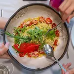 Hver morgen bliver gæsterne mødt med en overdådig økologisk som serveres på restauranten.